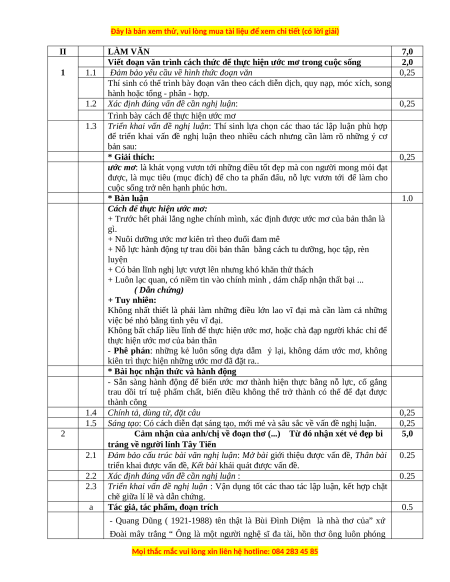 Xác định đúng vấn đề cần nghị luận : 0.25 2.3