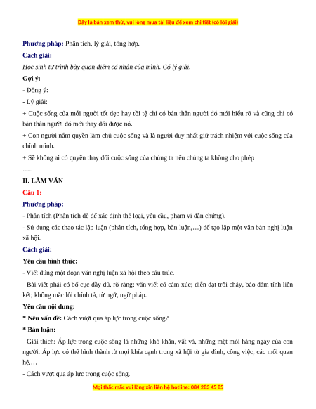 + Sẽ không ai có quyền thay đổi cuộc sống của chúng ta nếu chúng ta không cho phép ….. II. LÀM VĂN Câu 1: Phương pháp: