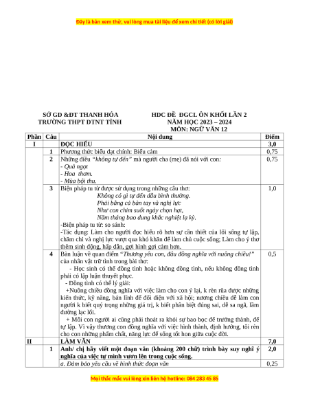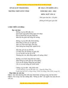 TRƯỜNG THPT DTNT TỈNH NĂM HỌC 2023 – 2024 MÔN: NGỮ VĂN 12 Phần Câu Nội dung Điểm I ĐỌC HIỂU 3,0 1