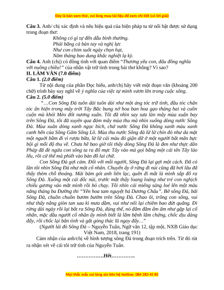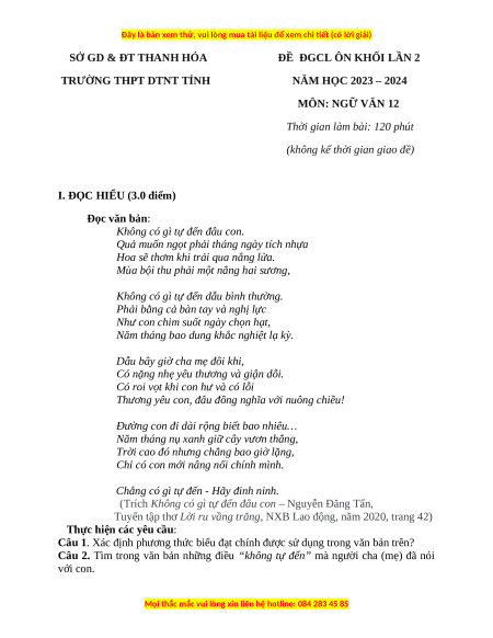 Đề thi thử tốt nghiệp Ngữ Văn trường THPT DTNL năm 2024