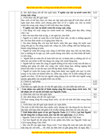 d. Chính tả, ngữ pháp 0,25 e. Sáng tạo 0,25
