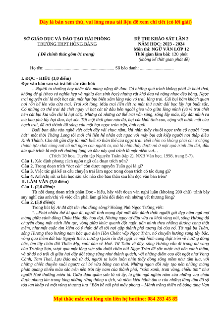 Đề thi thử tốt nghiệp Ngữ Văn trường THPT Hồng Bàng - Hải Phòng lần 2 năm 2024