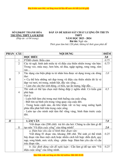 (Đáp án có 04 trang) NĂM HỌC 2023 - 2024 Bài thi: Ngữ văn