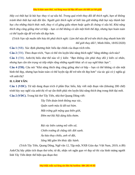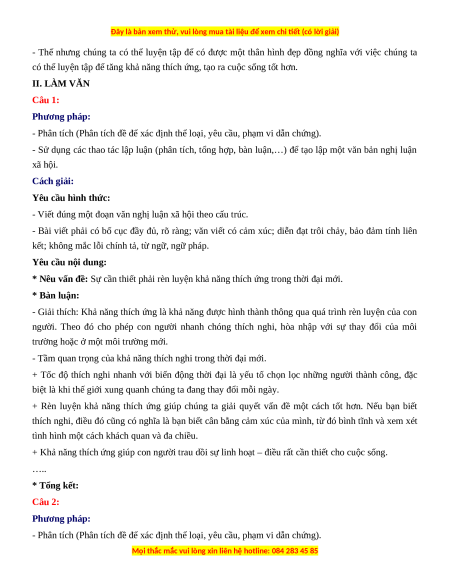 có thể luyện tập để tăng khả năng thích ứng, tạo ra cuộc sống tốt hơn. II. LÀM VĂN Câu 1: Phương pháp: