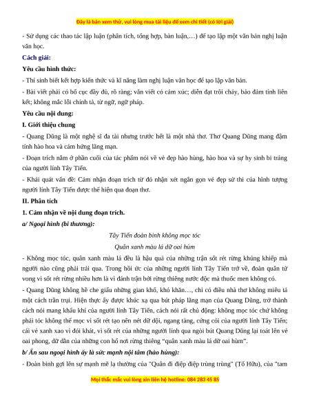 (Trích Tây Tiến, Quang Dũng, Ngữ văn 12, Tập một, NXB Giáo dục Việt Nam, 2019, tr.89)