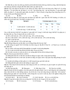 Câu 9. Một loài động vật, tính trạng màu mắt được quy định bởi 1 gene nằm trên NST thường có 4 allele, các
