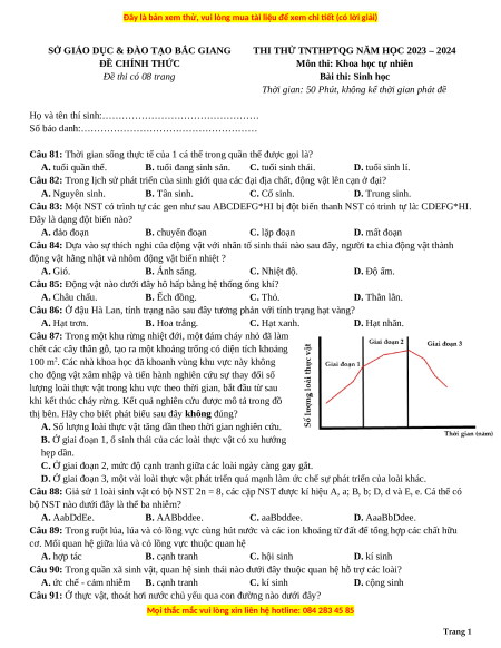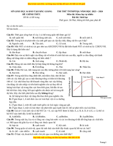 Đề thi thử tốt nghiệp Sinh học Sở Bắc Giang năm 2024