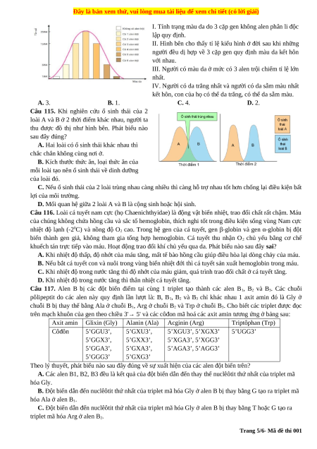 Câu 114. Quan sát sơ đồ dưới đây về màu da của người đậm dần theo sự gia tăng số lượng gen trội có