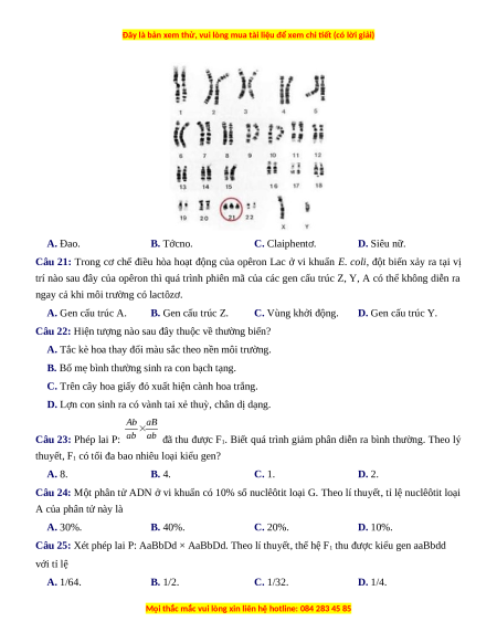D. Lợn con sinh ra có vành tai xẻ thuỳ, chân dị dạng. Câu 23: Phép lai P: