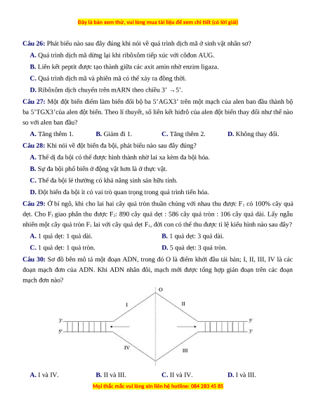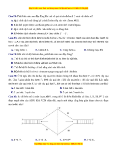 Câu 12: Tác nhân gây đột biến gen nào sau đây là tác nhân sinh học? A. Virut. B. Tia phóng xạ. C. 5 - brôm uraxin. D. Tia tử ngoại.
