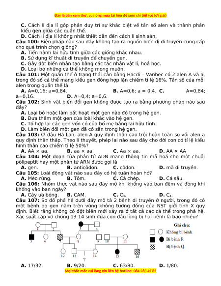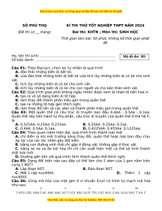 Bài thi: KHTN ; Môn thi: SINH HỌC