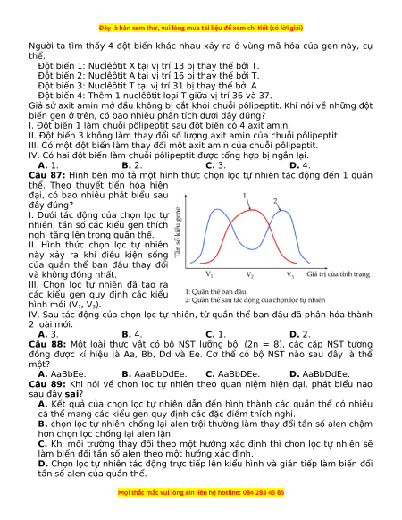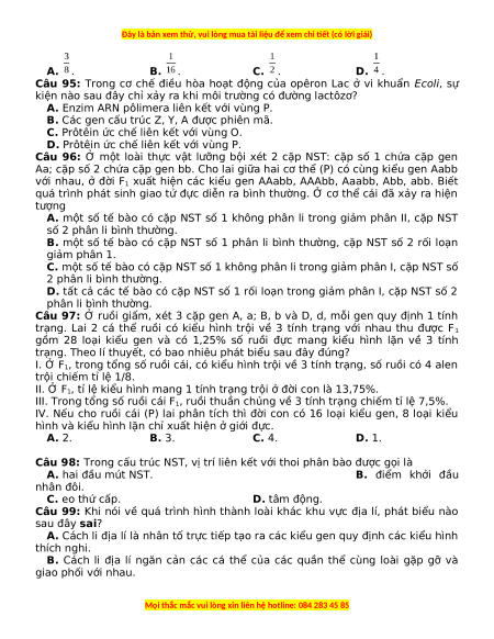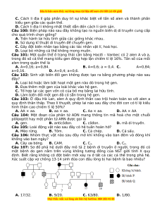 Câu 85: Dạng đột biến nào sau đây có thể làm cho 2 alen của 1 gen nằm trên cùng 1 NST? A. Lặp đoạn NST. B. Đảo đoạn NST.