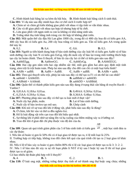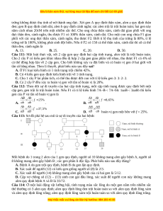 Câu 102: Một quần thể cây đậu Hà Lan gồm 1000 cây, trong đó có 400 cây hoa đỏ có kiểu gen AA,