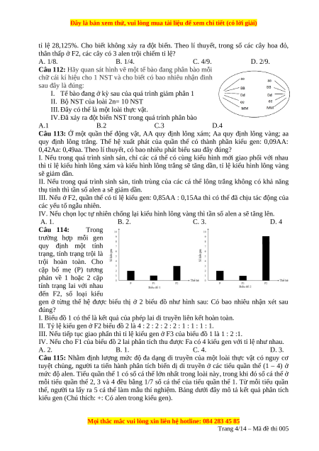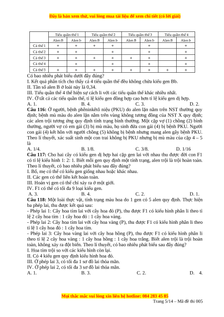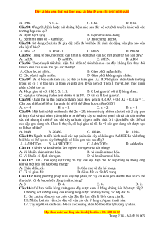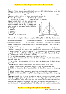IV. Nếu chọn lọc tự nhiên chống lại kiểu hình lông vàng thì tần số alen a sẽ tăng lên. A. 1. B. 2. C. 3. D. 4 Câu 114: Trong trường hợp mỗi gen quy định một tính