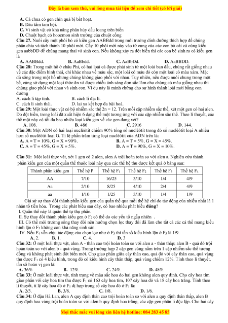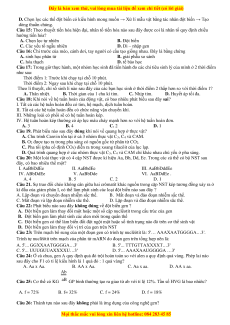Câu 30: Một ADN có hai loại nuclêôtit chiếm 90% tổng số nuclêôtit trong đó số nuclêôtit loại A nhiều