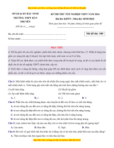 Bài thi: KHTN ; Môn thi: SINH HỌC THUYÊN