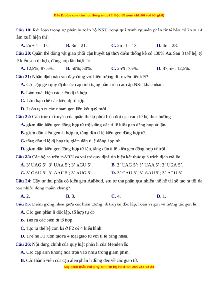 Bài thi: KHTN ; Môn thi: SINH HỌC