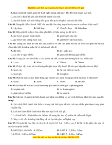 Câu 108: Một mARN trưởng thành dài 5100Ao tham gia dịch mã thì tạo ra 1 chuỗi pôlipeptit có số axit