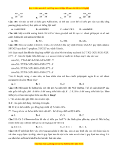 Câu 111: Có 3 tế bào của chim bồ câu có kiểu gen AaXBY tiến hành giảm phân tạo giao tử. Nếu không