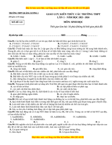 LẦN 1 - NĂM HỌC 2023 - 2024 MÃ ĐỀ 122 MÔN: SINH HỌC