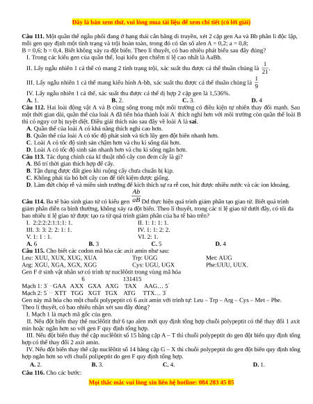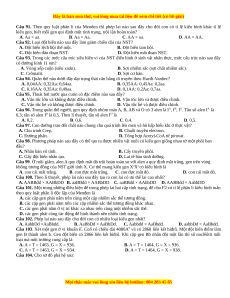 Câu 111. Một quần thể ngẫu phối đang ở hạng thái cân bằng di truyền, xét 2 cặp gen Aa và Bb phân li độc lập,