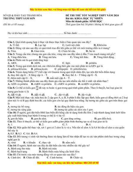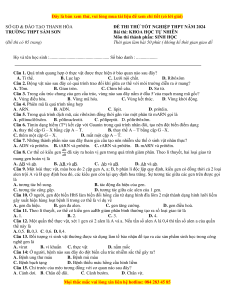 Đề thi thử tốt nghiệp Sinh học trường THPT Sầm Sơn năm 2024