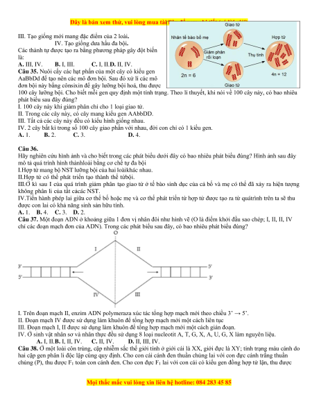 IV. 2 cây bất kì trong số 100 cây giao phấn với nhau, đời con chỉ có 1 kiểu gen. A. 1. B. 2. C. 3. D. 4. Câu 36.