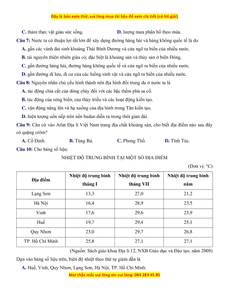 Câu 7: Nước ta có thuận lợi rất lớn để xây dựng đường hàng hải và hàng không quốc tế là do
