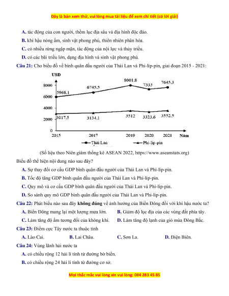 Bài thi: KHXH; Môn thi: ĐỊA