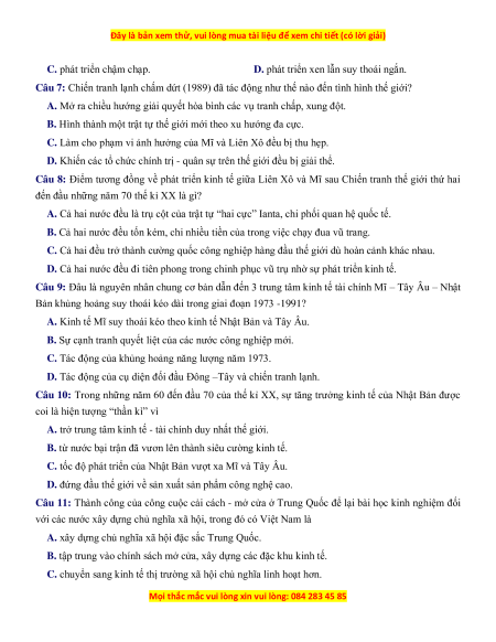 Câu 8: Điểm tương đồng về phát triển kinh tế giữa Liên Xô và Mĩ sau Chiến tranh thế giới thứ hai