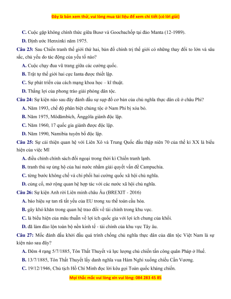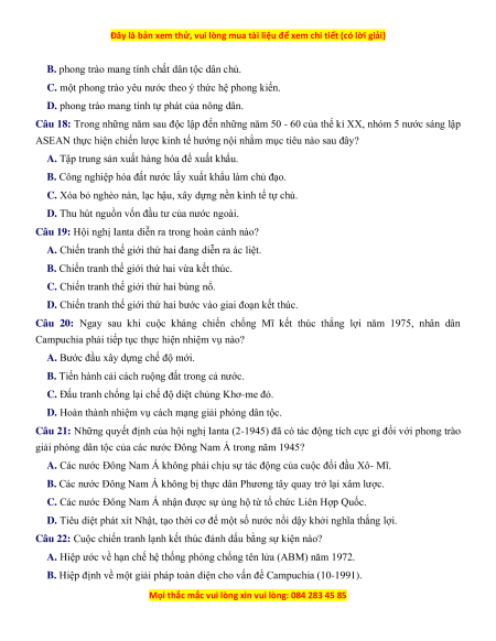 Câu 21: Những quyết định của hội nghị Ianta (2-1945) đã có tác động tích cực gì đối với phong trào