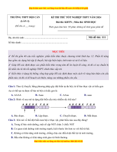Họ, tên thí sinh: ..................................................................... Mã đề thi: 111