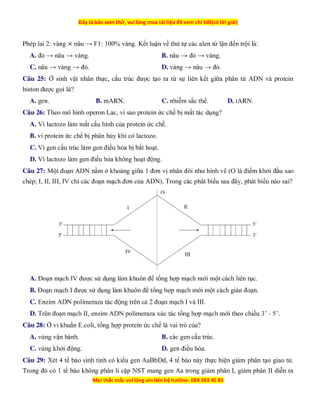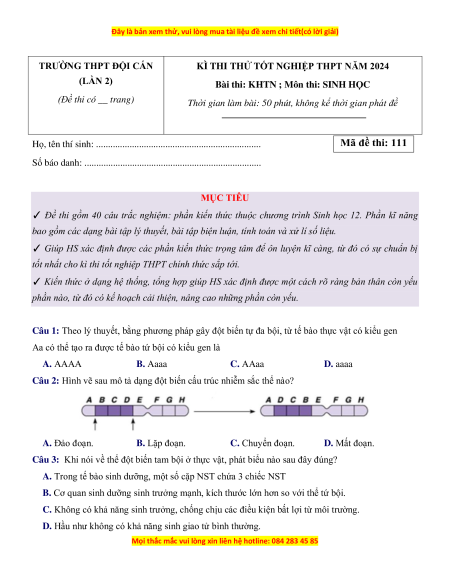 Bài thi: KHTN ; Môn thi: SINH HỌC