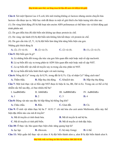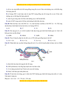 Câu 7: Một loài thực vật có bốn cặp NST được kí hiệu là Aa, Bb, Dd và Ee. Trong các cơ thể có bộ
