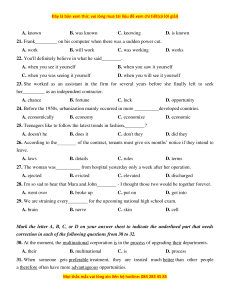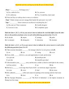 Bài thi: NGOẠI NGỮ ; Môn thi: TIẾNG ANH