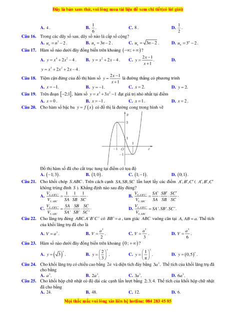 Câu 21. Cho khối chóp S.ABC . Trên cách cạnh S , A S ,