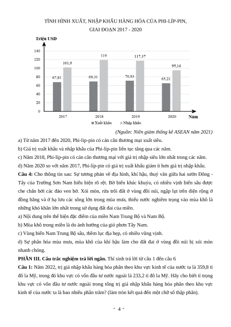 TÌNH HÌNH XUẤT, NHẬP KHẨU HÀNG HÓA CỦA PHI-LÍP-PIN, GIAI ĐOẠN 2017 - 2020
