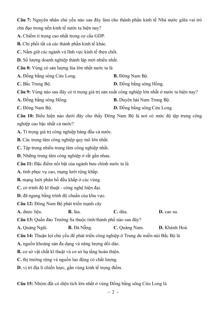 Câu 9: Vùng nào sau đây có tỉ trọng giá trị sản xuất công nghiệp lớn nhất ở nước ta hiện nay?