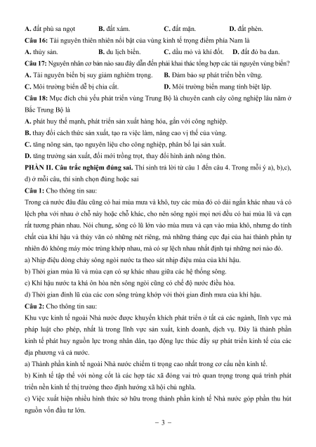 Câu 16: Tài nguyên thiên nhiên nổi bật của vùng kinh tế trọng điểm phía Nam là A. thủy sản. B. du lịch biển.