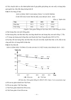 (Đơn vị: Nghìn tấn) Năm 2010 2021 2023 Khai thác 707,1 1167,9 1219,5 Nuôi trồng 80,8 101,3 109,6