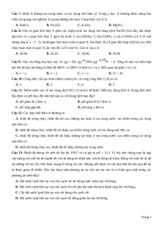 Câu 11: Thêm nước vào 10 mL dung dịch HCl 1,0 mol/L để được 1000 mL dung dịch A. Dung dịch mới