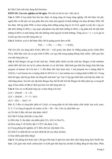 c. Chất Y có công thức phân tử C4H4O4Na2. Trang 4