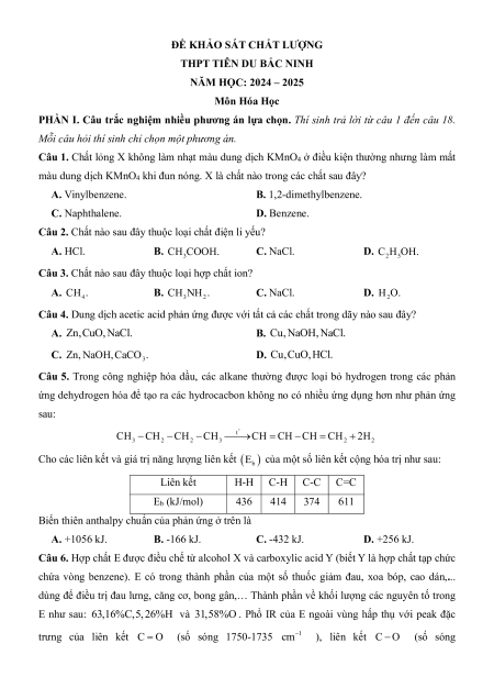 NĂM HỌC: 2024 – 2025 Môn Hóa Học