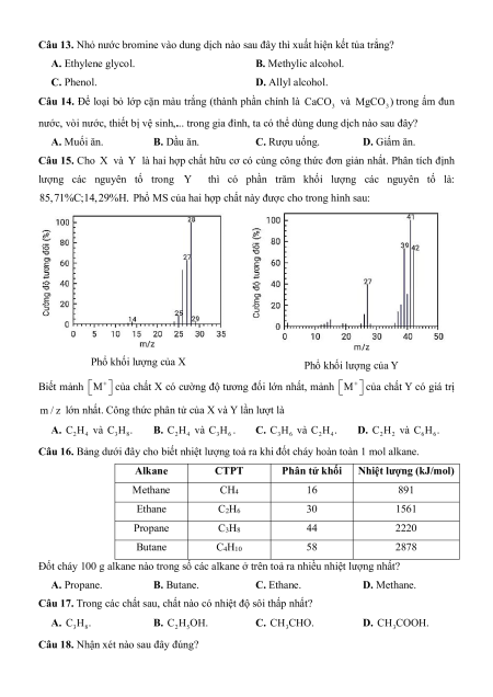 Câu 15. Cho X và Y là hai hợp chất hữu cơ có cùng công thức đơn giản nhất. Phân tích định