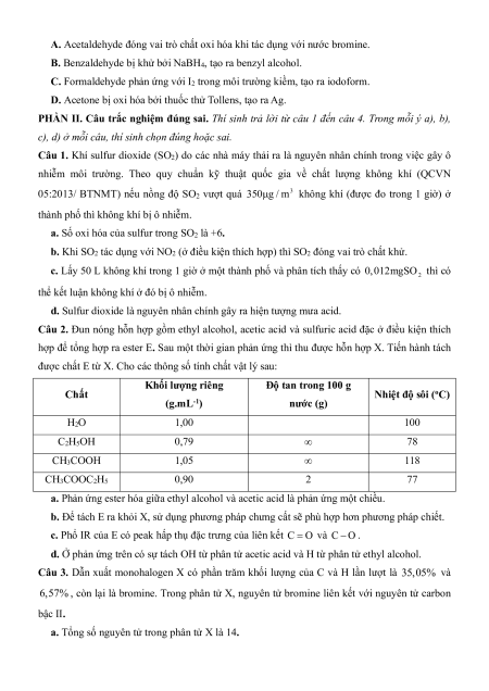 Câu 1. Khí sulfur dioxide (SO2) do các nhà máy thải ra là nguyên nhân chính trong việc gây ô