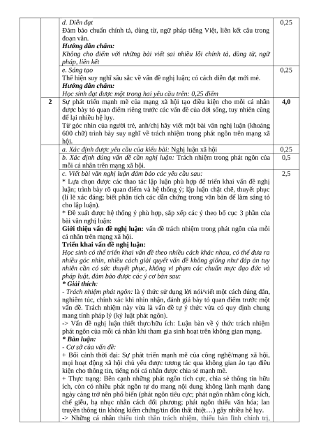 Không cho điểm với những bài viết sai nhiều lỗi chính tả, dùng từ, ngữ pháp, liên kết e. Sáng tạo 0,25