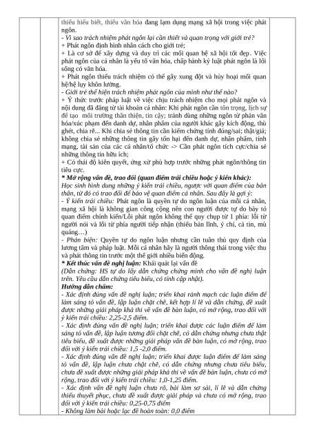 b. Xác định đúng vấn đề cần nghị luận: Trách nhiệm trong phát ngôn của 0,5