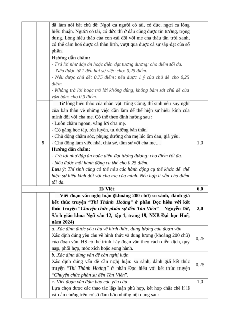 - Trả lời sai hoặc không trả lời: cho 0,0 điểm.