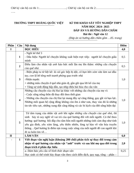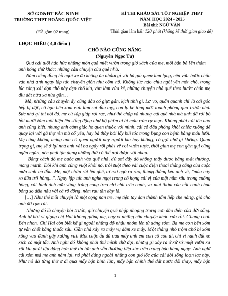 Đề thi thử tốt nghiệp THPT 2025 Ngữ văn trường THPT Hoàng Quốc Việt - Sở GD&ĐT Bắc Ninh
