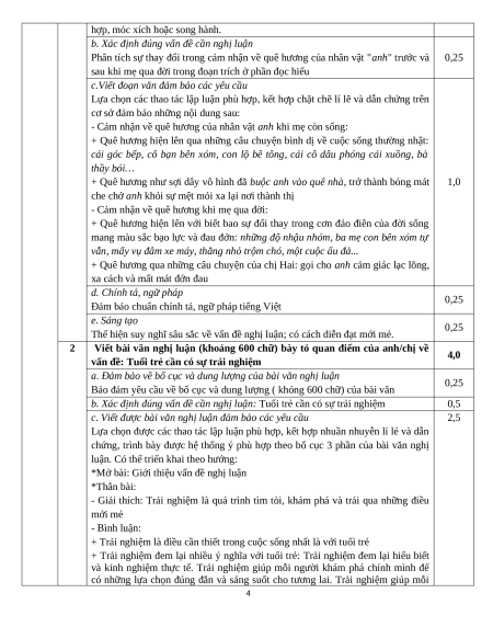 a. Đảm bảo về bố cục và dung lượng của bài văn nghị luận 0,25